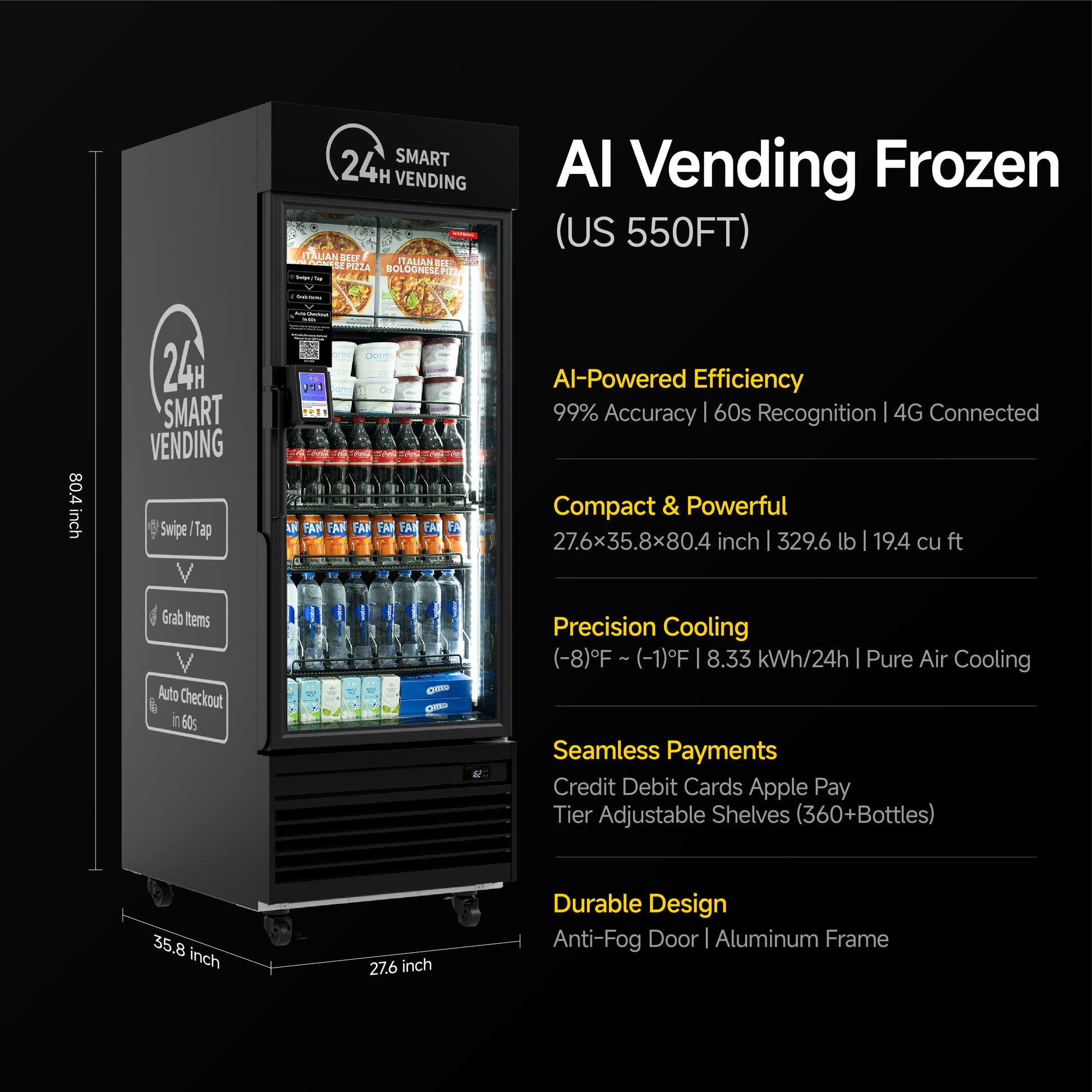 HAHA AI Vending Freezer 550 | POS/NFC - Flexi-Temp with 384 bottles space