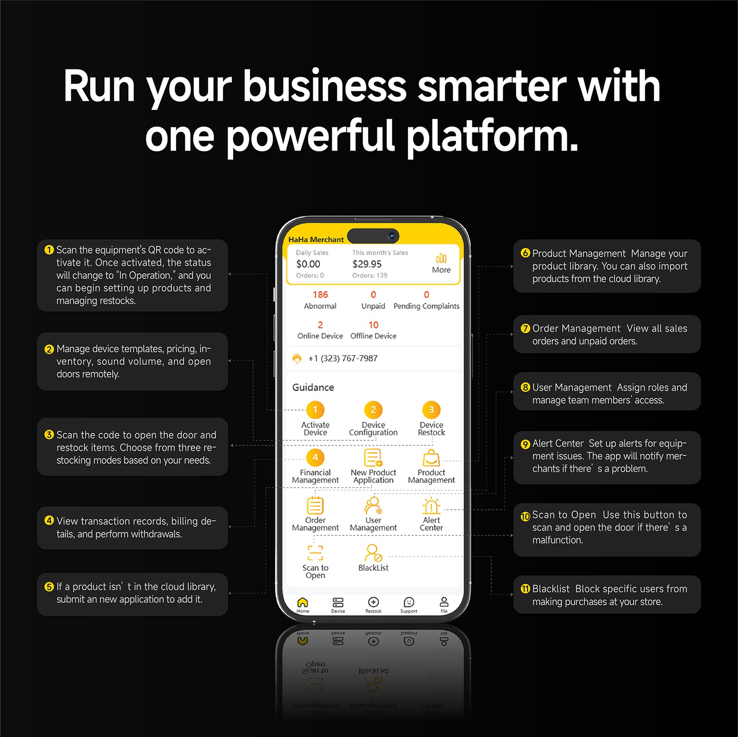 need personalized assistance, our support team is happy to help via email Sales@hahavending.com or call +1 704-645-0457.