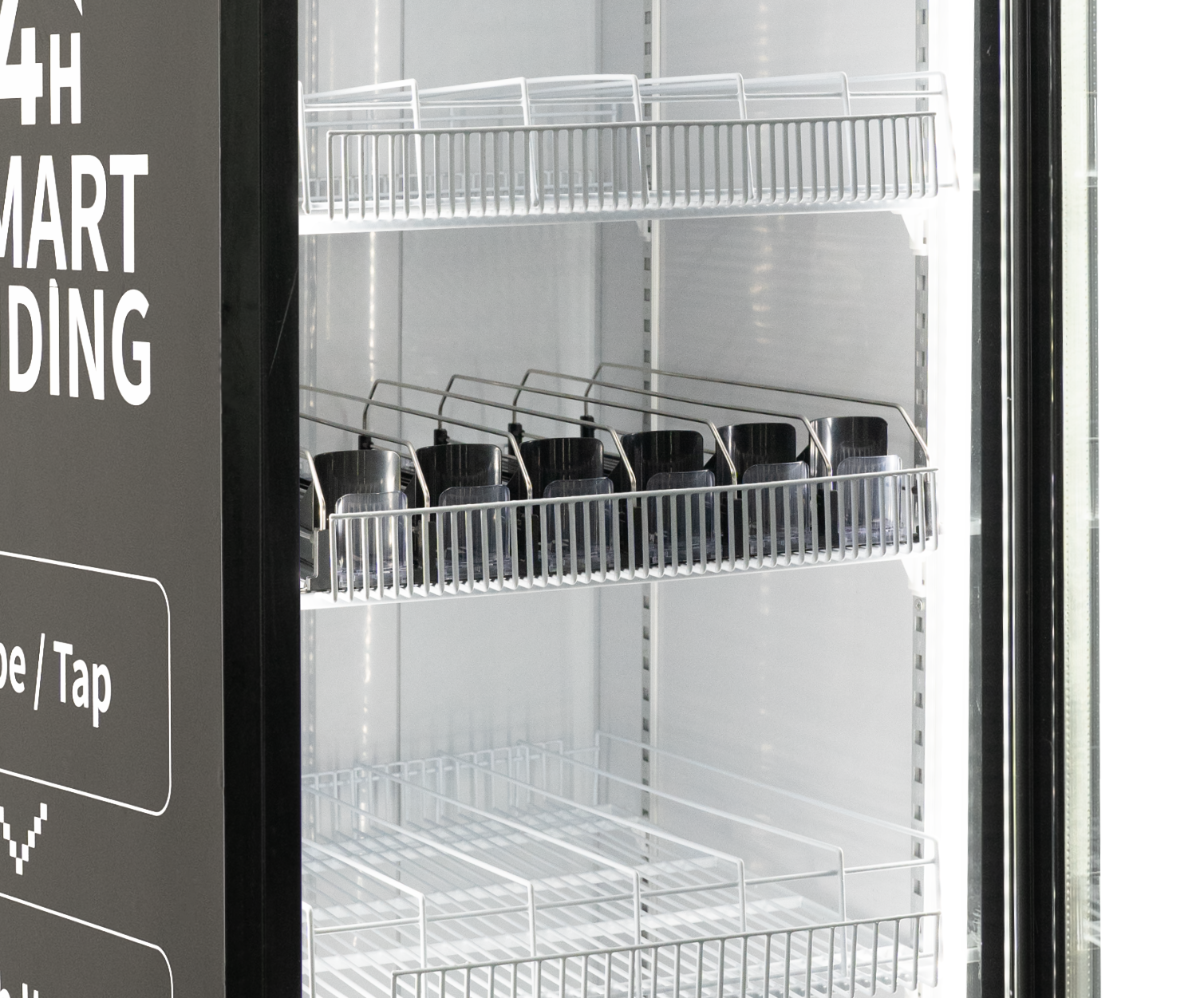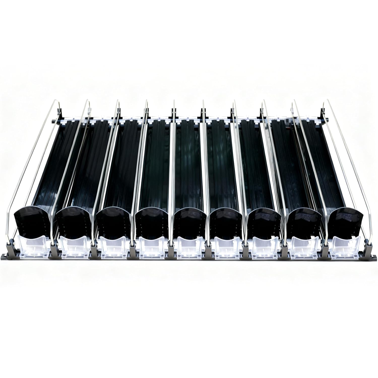 - Smooth and Stable Dispensing: The optimized pusher system ensures bottled and canned drinks move forward smoothly and consistently. It effectively prevents tipping or jamming, keeping beverages properly aligned for easy access. This stable dispensing performance enhances customer satisfaction and minimizes maintenance or service interruptions.